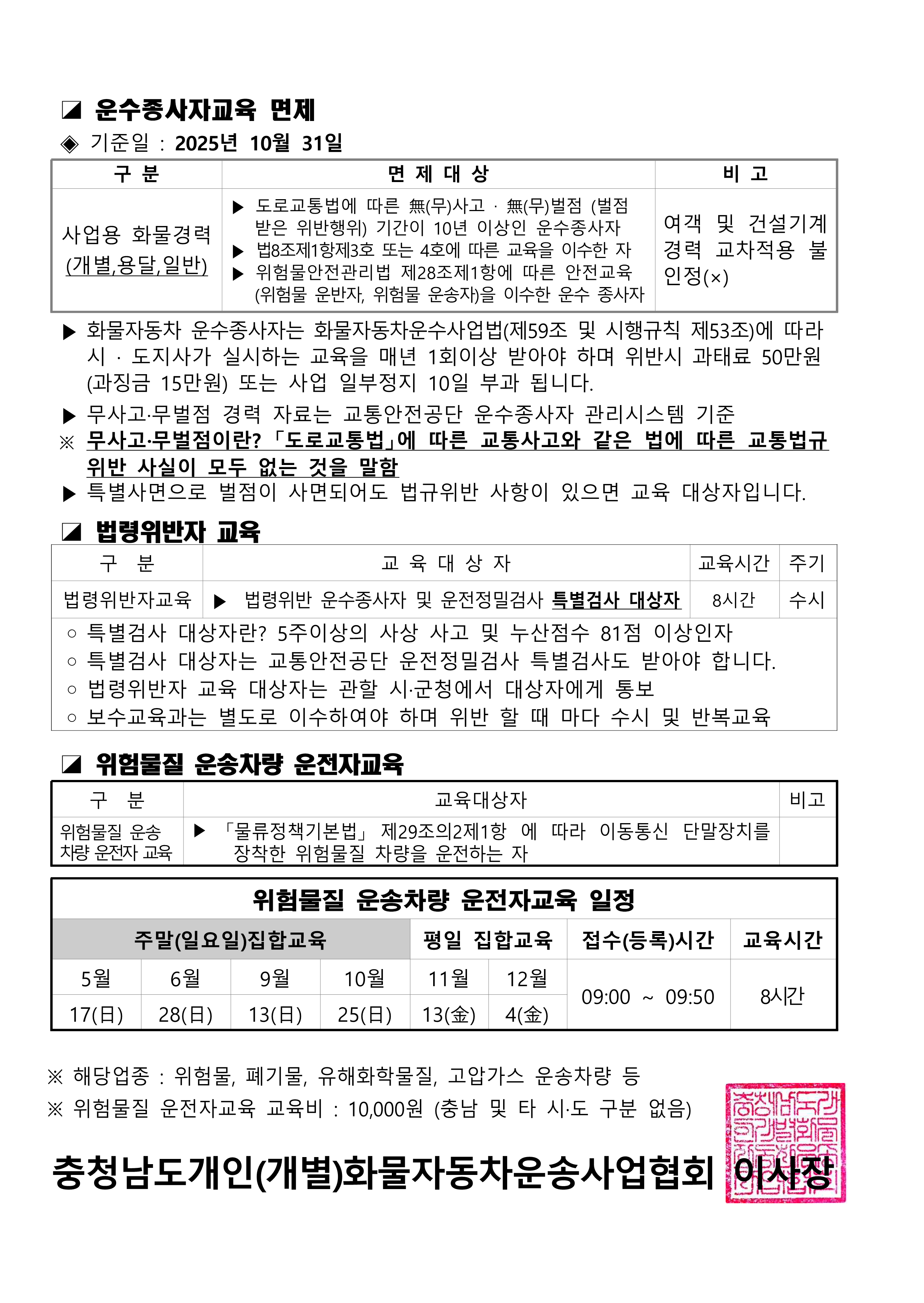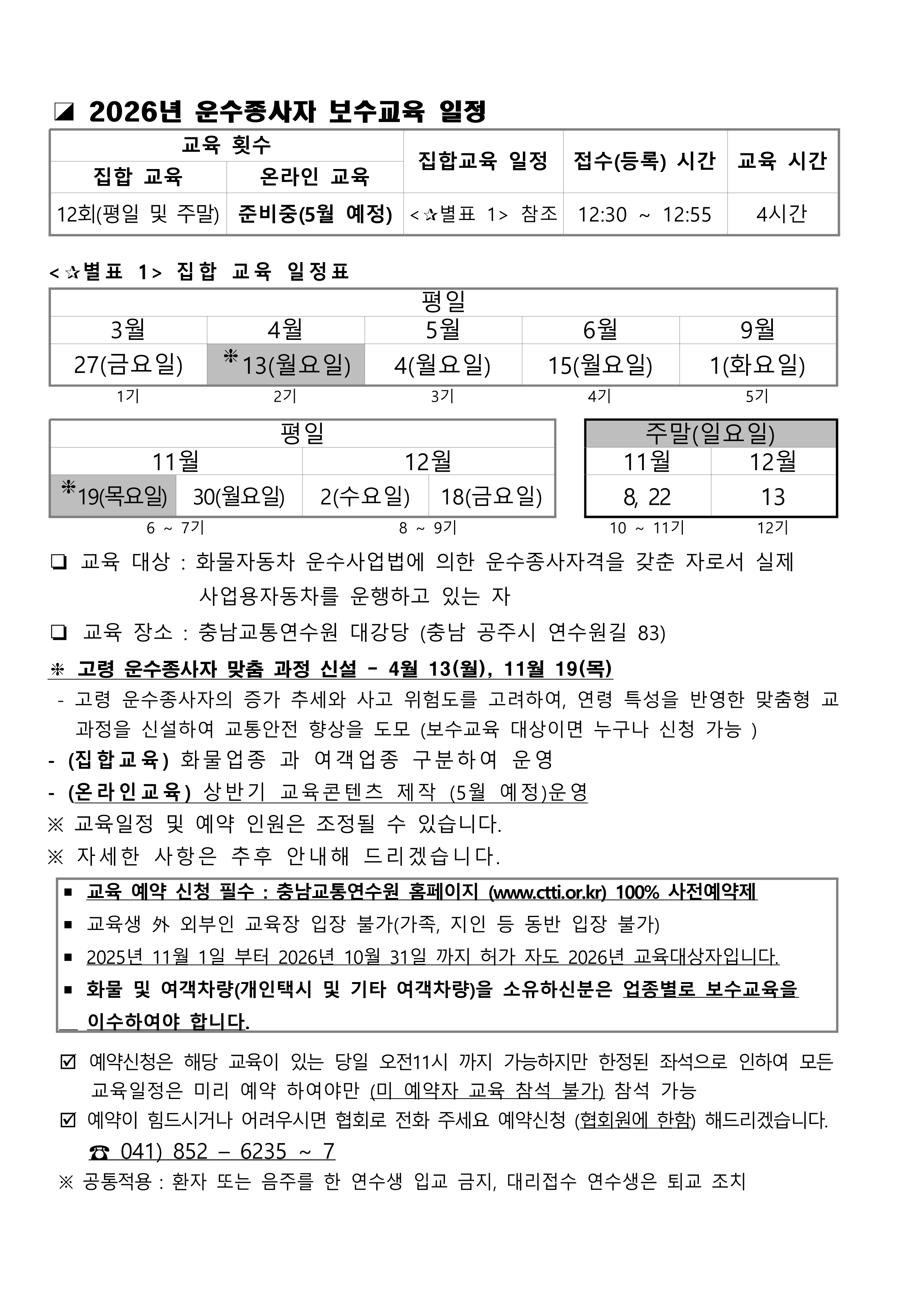 2026년 운수종사자 보수교육 일정